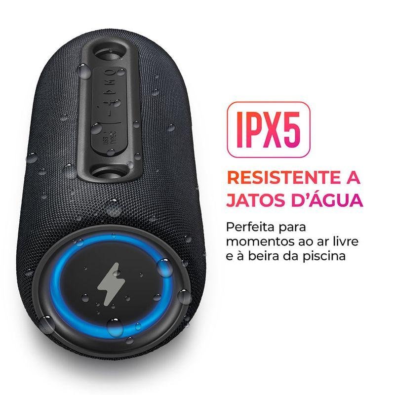 - Certificação IPX5 (resistente a respingos)